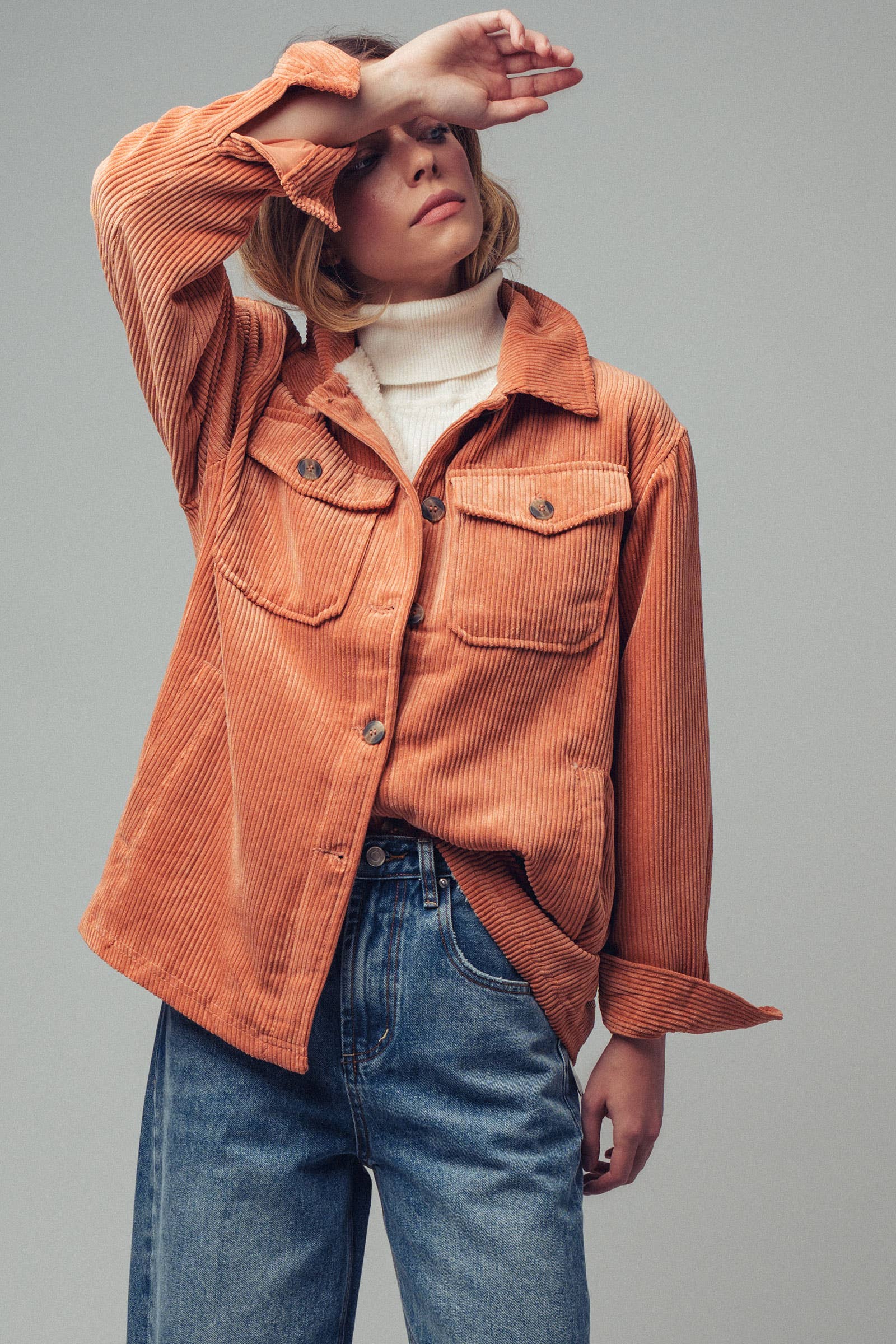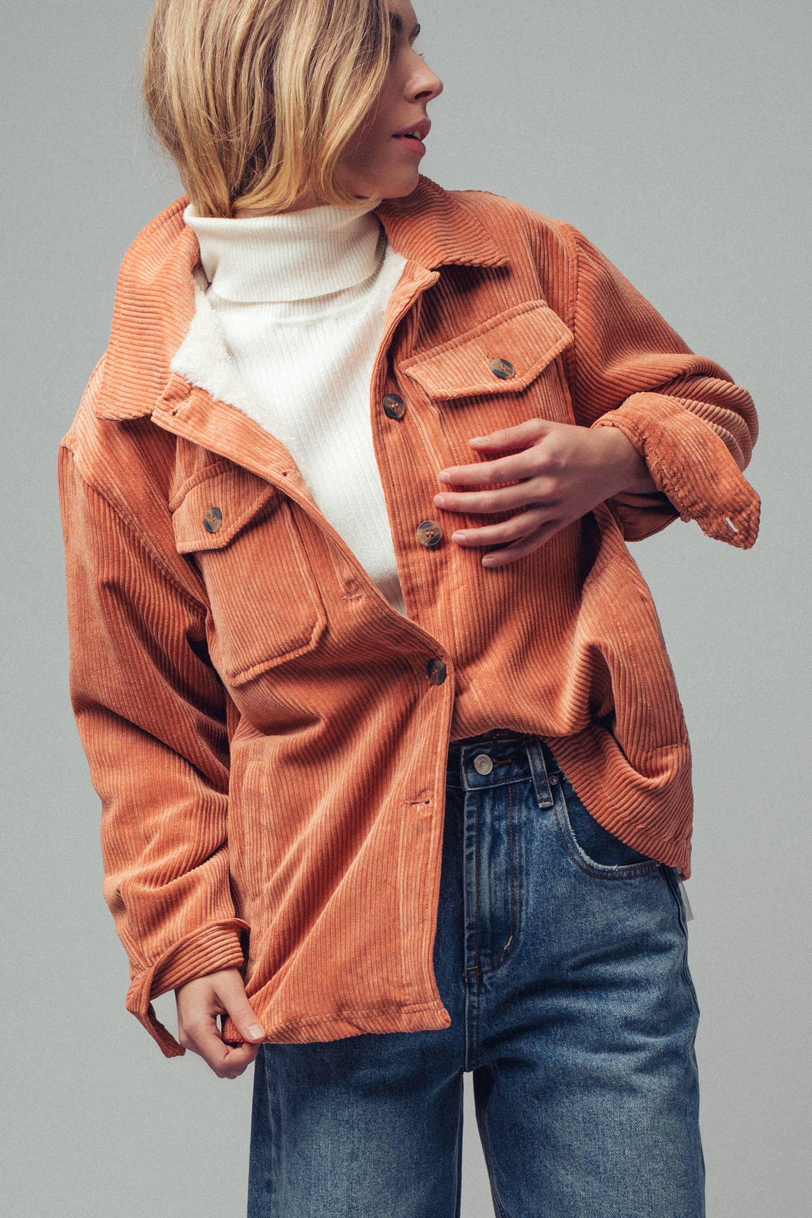 Oversized Sherpa Lined Corduroy Shacket: Spice