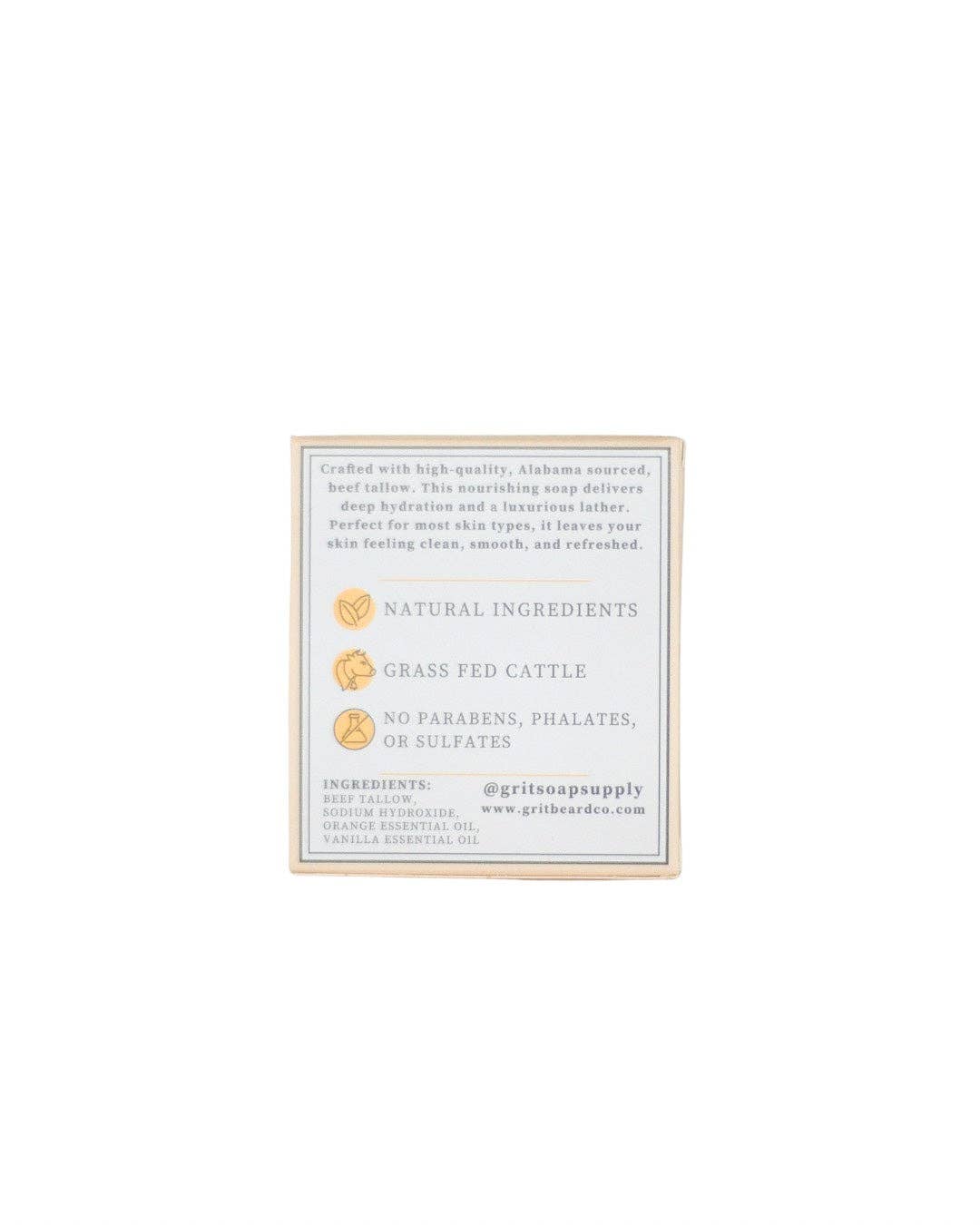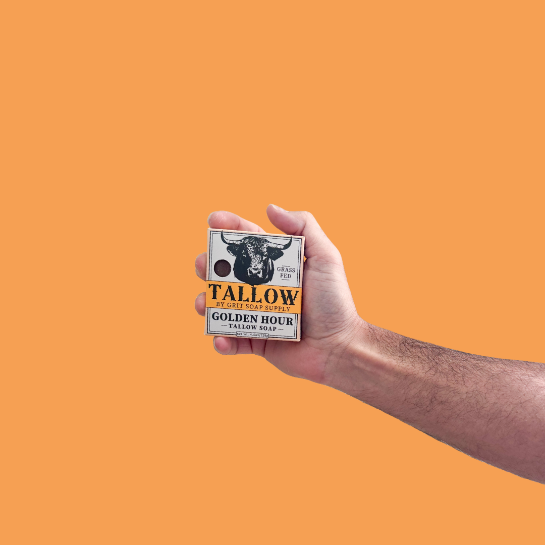 Warm. Creamy. Sunlit. Golden Hour captures the cozy glow of the day’s last light with just three simple ingredients: deeply nourishing tallow, essential oils of sweet orange and vanilla, and lye. The result is a rich, velvety lather with a dreamy citrus-cream scent that wraps your skin in comfort and calm. Simple ingredients. Radiant skin. Like sunshine in a bar. Scent Profile: Orange - Vanilla Ingredients: Beef Tallow, Orange Essential Oil, Vanilla Essential Oil, Sodium Hydroxide (Lye)